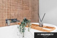Designer bathrooms with floor-to-ceiling tiles; internal laundry with dryer
