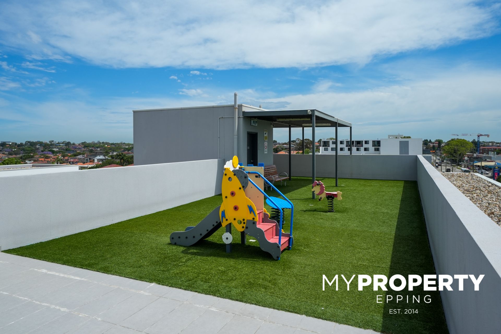 Communal rooftop area featuring sitting area and kids' play area